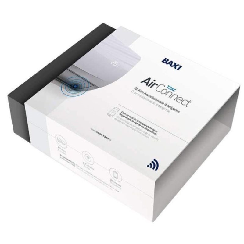 El módulo Wi-Fi Baxi Air Connect es la aplicación que te permite controlar completamente la temperatura y el confort de tu hogar en cualquier momento y lugar. Instalar este accesorio es muy sencillo: simplemente abre la tapa de la caja eléctrica de la unidad interior y conéctalo al conector correspondiente.