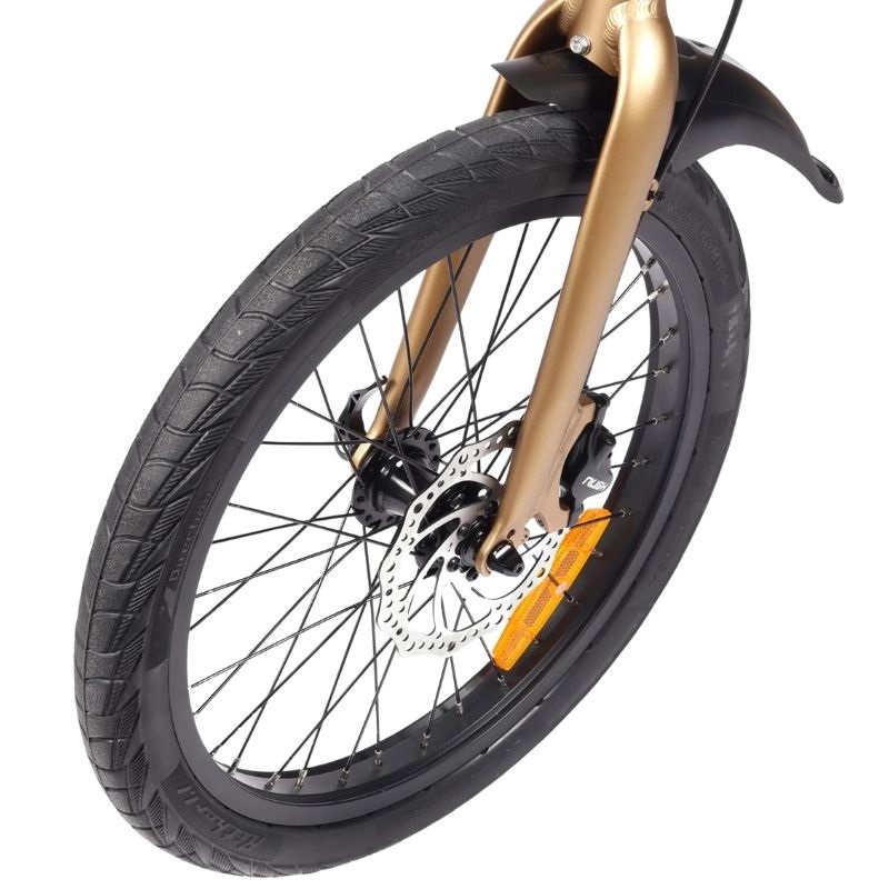 Esta bicicleta está equipada con ruedas de 20 pulgadas, tanto delanteras como traseras, un tamaño que facilita la maniobrabilidad y el transporte, ideal para desplazamientos urbanos o viajes cortos. Su batería integrada permite recorrer hasta 45 km con una sola carga, ofreciendo una autonomía adecuada para las necesidades diarias sin necesidad de recargas frecuentes. Si bien no se especifica la carga máxima, está diseñada para un ciclista con una carga moderada, acorde con su categoría. Su sistema de carga es compatible con enchufes europeos, lo que garantiza la comodidad y compatibilidad en cualquier punto de carga doméstico o estándar.