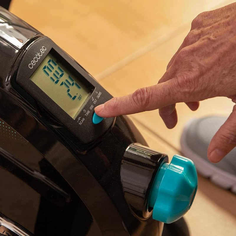 La pantalla LCD de alta visibilidad muestra el tiempo, la velocidad, las calorías, la distancia y el modo de escaneo.