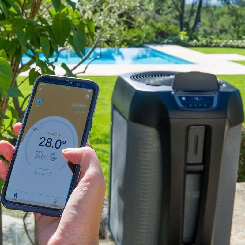 Fácil integración en espacios reducidos. La Z550iQ se integra discretamente en cualquier piscina. Gracias a su tamaño compacto, que ocupa la mitad del espacio que las bombas de calor estándar, y a su flujo de aire vertical, cabe incluso en los rincones más pequeños. Controlable desde su smartphone, la bomba de calor Z550iQ permite configurar y monitorizar su modo de funcionamiento de forma remota. Con las actualizaciones a través de la aplicación Fluidra Pool, la Z550iQ se beneficia de mejoras continuas.