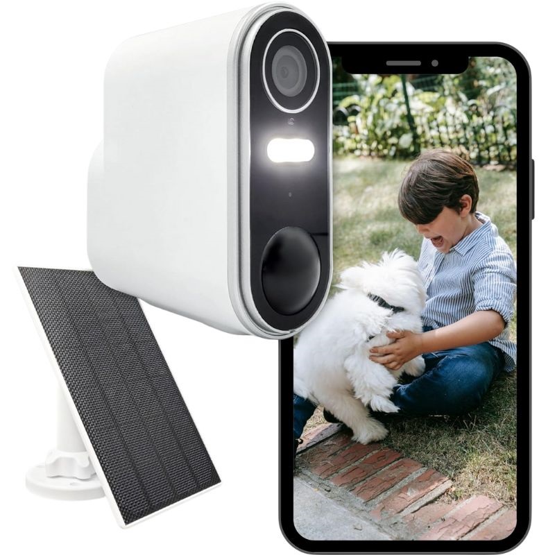 La cámara IP inalámbrica para exteriores Konyks Camini Air 2 Solar AAACF47440 es una solución avanzada para la vigilancia continua en exteriores. Se distingue por su larga duración gracias a un panel solar integrado que proporciona alimentación independiente con una conexión de 240 V. Su diseño en blanco y sus compactas dimensiones de 1,8 cm de grosor la hacen discreta y elegante, integrándose a la perfección en diversos entornos.