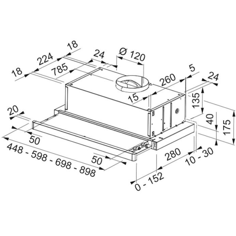 Este modelo destaca por su perfecta y elegante integración en tu cocina, gracias a su acabado en negro cristal. Su diseño modular permite ajustar su ancho de 28,2 cm a 43,2 cm, ofreciendo una flexibilidad de instalación inigualable. Equipada con iluminación LED, esta campana proporciona una excelente visibilidad, esencial para una cocción precisa y segura. Además, sus tres velocidades de extracción te permiten controlar la intensidad y adaptarla fácilmente a todas tus necesidades culinarias.