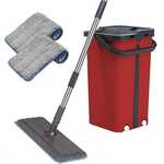 Con cubo de dos cámaras que permite lavar y secar las fregonas. Lave el lado para cargar el trapeador con agua y el lado seco para drenar el exceso de agua.