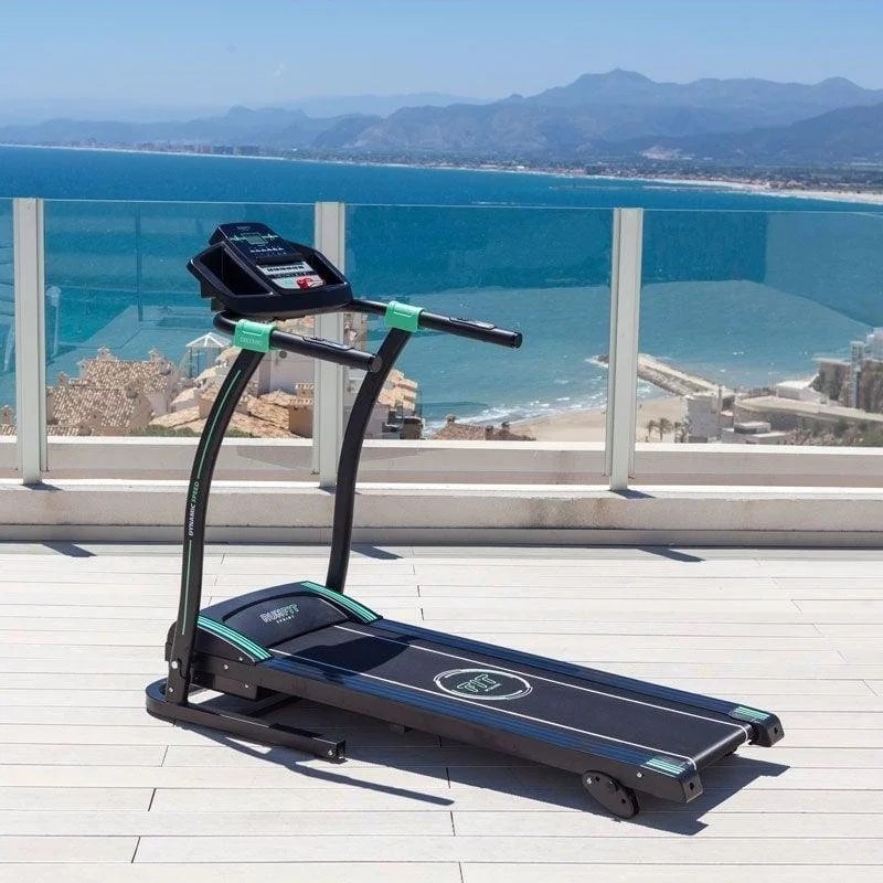 La cinta de correr plegable RunnerFit Sprint es ideal para entrenar en casa. Velocidad ajustable: de 0,8 km/h a 14 km/h.