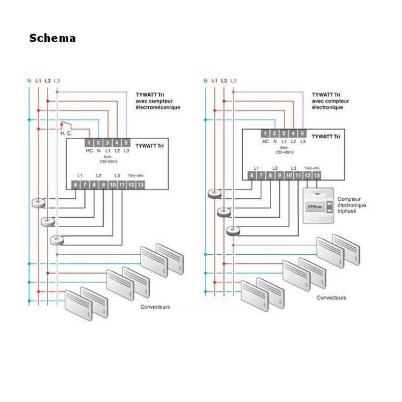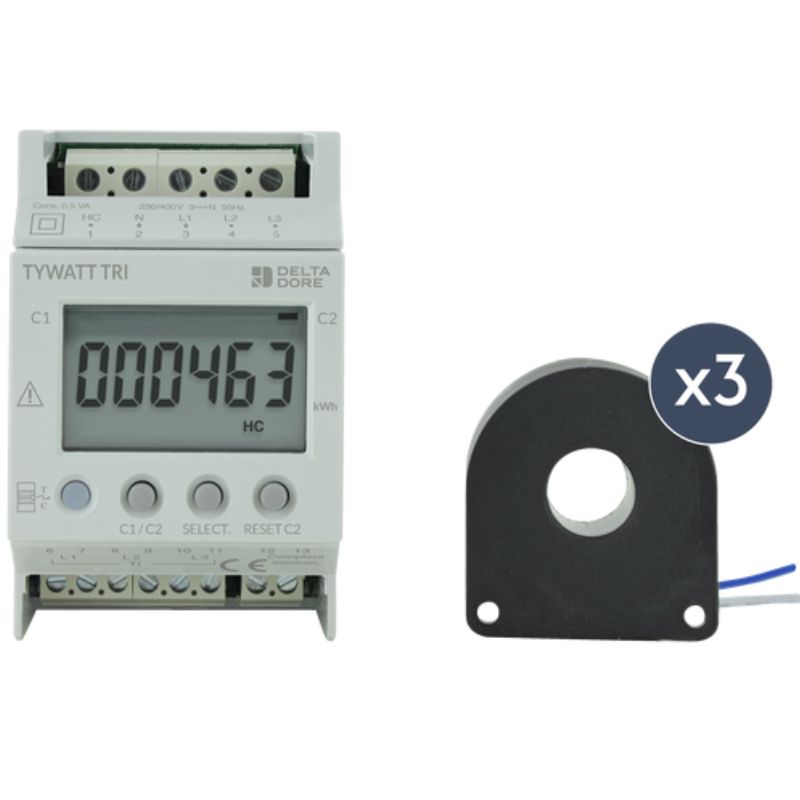 Indicador de consumo trifásico Delta Dore TYWATT para instalaciones trifásicas. Indicador de distribución de consumo. Incluye 3 transformadores de corriente.