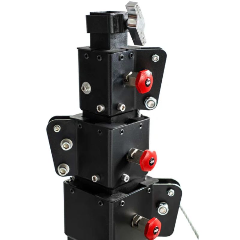 Este equipo se puede utilizar tanto en interiores como en exteriores y es adecuado para instalaciones industriales, comerciales o domésticas. El elevador de materiales consta de tres secciones telescópicas de acero con recubrimiento de polvo negro y propiedades especiales de resistencia a los arañazos. Esto, sumado a que todos los componentes son de acero inoxidable, lo hace ideal para uso en exteriores y garantiza la máxima resistencia a la corrosión.