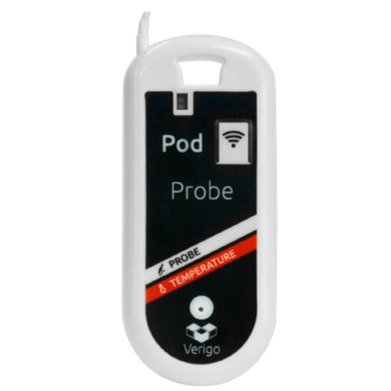El registrador de datos Environmental Pod registra y transmite de forma inalámbrica información de temperatura y alertas de viaje a sus teléfonos inteligentes y tabletas. ¡No necesita cables ni lectores! Simplemente descargue la aplicación Verigo para Android™ o iOS™ en su dispositivo inteligente y comience a usar su Environmental Pod.