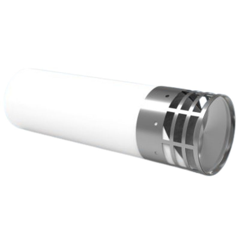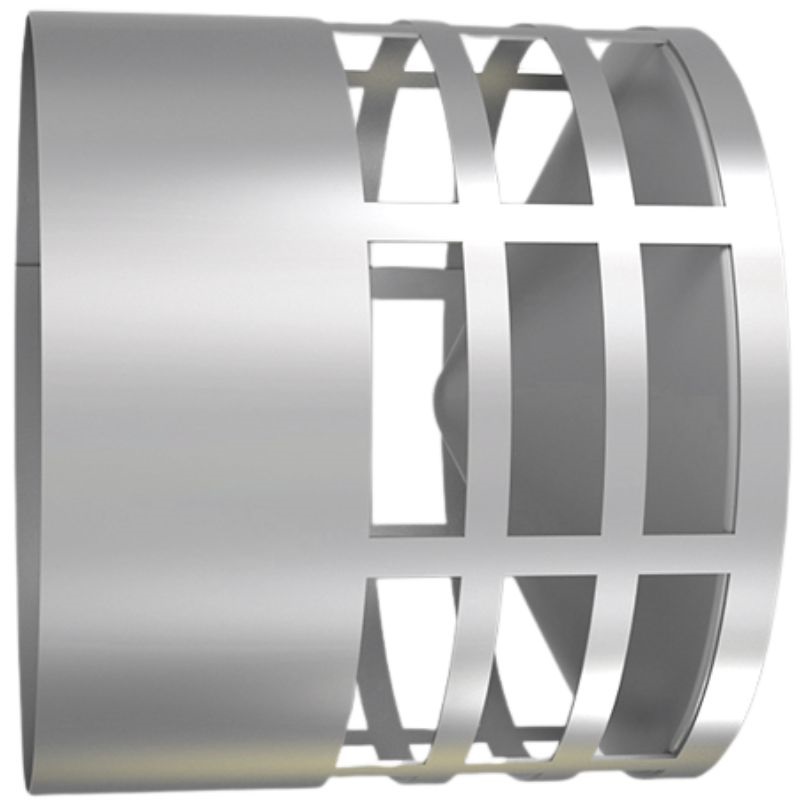 Deflector externo de acero inoxidable para la evacuación de humos en conductos horizontales, un dispositivo tradicional para instalación individual en interiores.