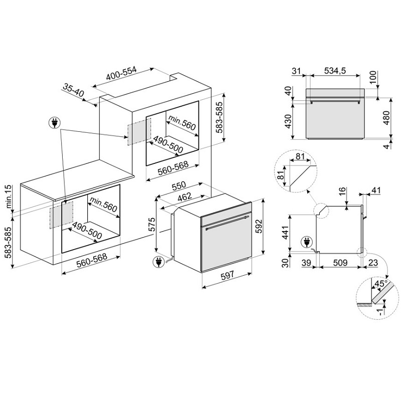 Dimensiones de empotramiento: 56 x 58 cm, 57 x 59 cm