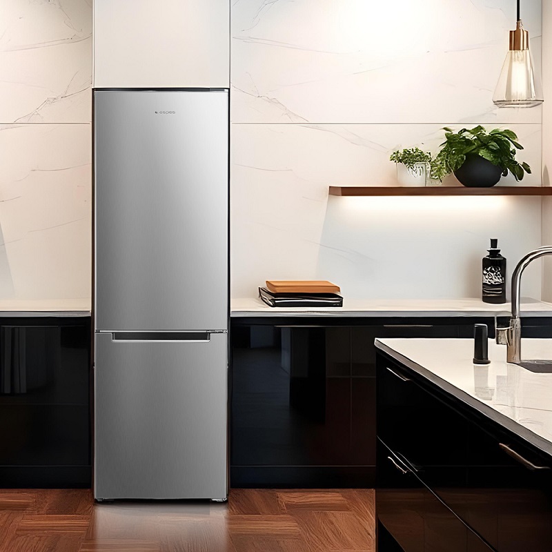 Tecnología No Frost en el congelador y descongelación automática en el frigorífico: el aire circula de forma más uniforme, evitando la acumulación de escarcha. El resultado: menor mantenimiento, mejor conservación de los alimentos y fácil acceso a los cajones del congelador. Con una capacidad neta total de 293 litros, este frigorífico-congelador está diseñado para una organización óptima: 4 compartimentos en el frigorífico, 1 cajón para verduras y 3 compartimentos en la puerta para separar bebidas, salsas y otros alimentos.