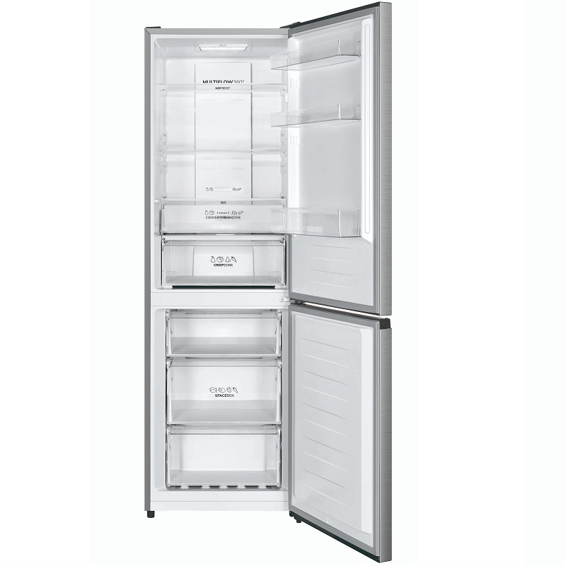 Con una capacidad total de 304 litros, este modelo ofrece una distribución equilibrada: un amplio compartimento frigorífico para productos frescos y un congelador inferior para un fácil acceso a los alimentos congelados. Los estantes de cristal son robustos y fáciles de limpiar, soportan recipientes pesados y ofrecen una excelente visibilidad de su contenido. La iluminación LED interior mejora la visibilidad de los alimentos y reduce las sombras.