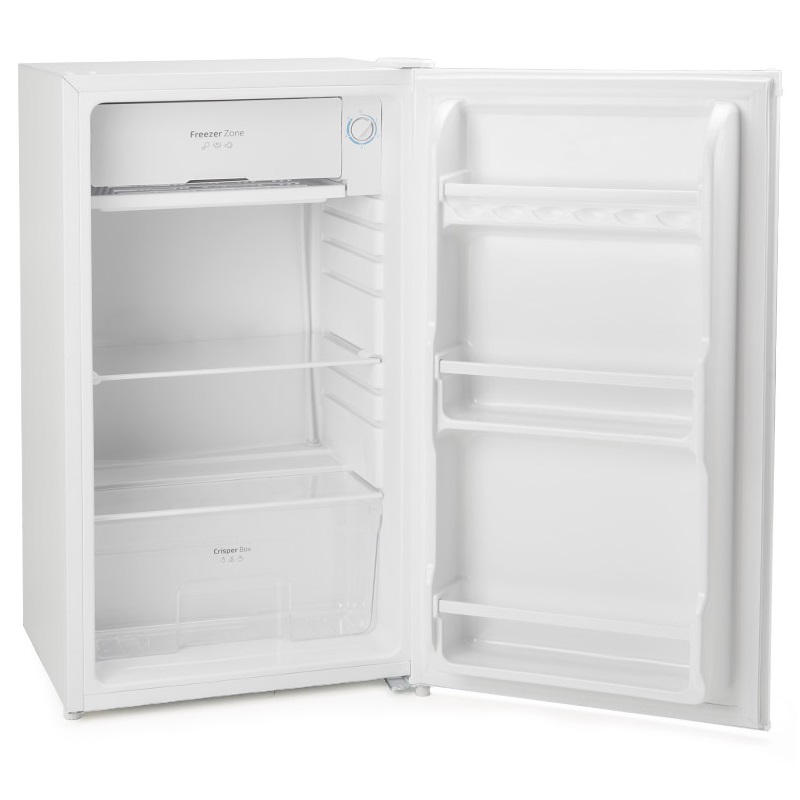La puerta reversible es una gran ventaja, ya que permite elegir la dirección de apertura según el espacio disponible, lo que resulta especialmente práctico en cocinas pequeñas o con distribuciones inusuales. En el interior, el refrigerador cuenta con cinco estantes: tres en la puerta, ideales para botellas, frascos y recipientes pequeños, y dos en el interior para artículos más grandes. También está equipado con un cajón para verduras para mantener las frutas y verduras frescas durante más tiempo.