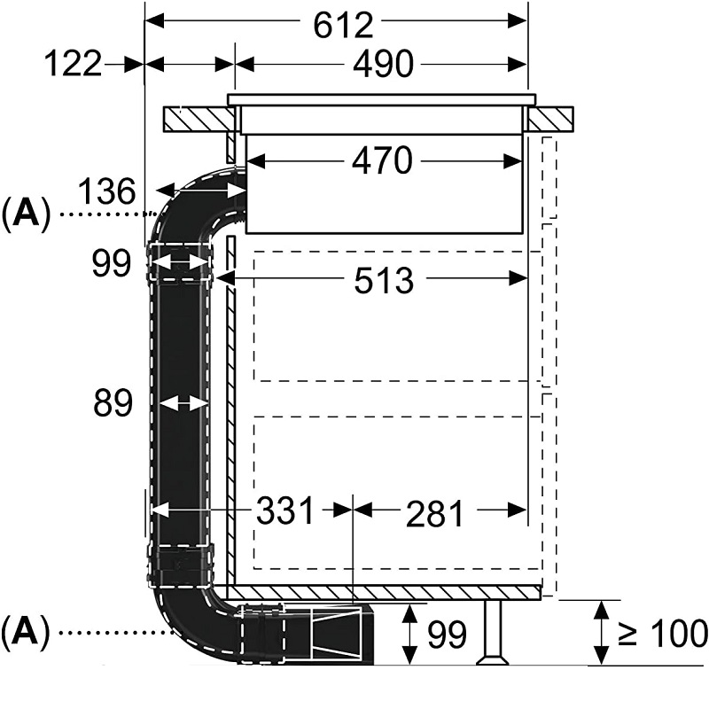 Kit de accesorios para un sistema de recirculación parcialmente canalizado para encimeras de 70 cm de profundidad o más.