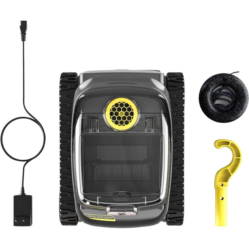 El robot OP32 incluye un cargador, un filtro sencillo y un gancho universal para facilitar su extracción del agua. Este robot inalámbrico, equipado con una batería de iones de litio, permite la limpieza autónoma de su piscina sin necesidad de estar conectado al sistema de filtración ni a una toma de corriente. Cepilla y recoge los residuos en su propia cesta de filtro.