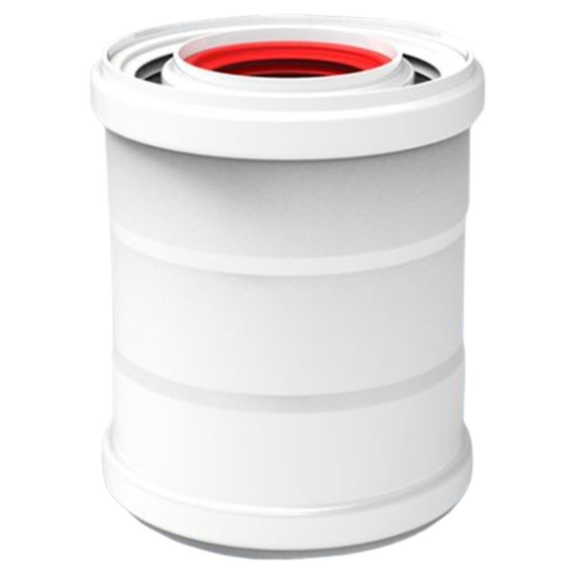 Este racor coaxial de aluminio blanco, con un diámetro de 60/100 mm, fabricado en polipropileno blanco y aluminio lacado en blanco, es la solución ideal para reparar fugas y filtraciones en conductos de humos coaxiales de calderas de condensación. Permite la conexión de extremos macho de tubería. Garantiza una estanqueidad perfecta gracias a sus juntas de EPDM y su mecanismo de bloqueo de seguridad manual.