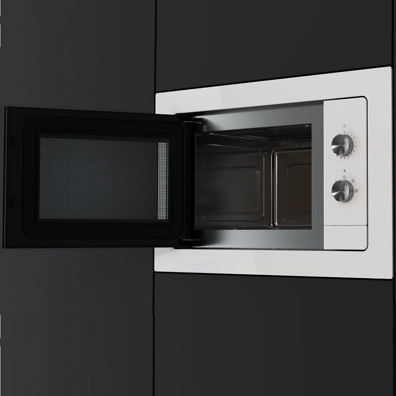 Con 20 litros de capacidad y 1200 W de potencia, este microondas ofrece una cocción rápida y uniforme, ideal para usuarios exigentes que priorizan el rendimiento y la calidad. Su diseño integrado se integra a la perfección en su cocina, disimulando el electrodoméstico a la perfección entre sus muebles.