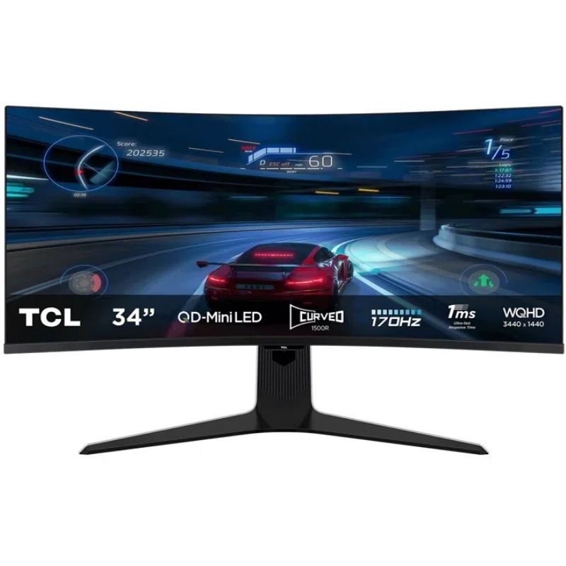 El monitor curvo para juegos TCL 34R83Q de 34 pulgadas ofrece una experiencia visual avanzada, diseñada específicamente para jugadores exigentes que buscan una calidad de imagen superior y una fluidez óptima. Su pantalla ultra ancha de 34" con resolución WQHD (3440 x 1440 píxeles) proporciona una nitidez y un detalle superiores a los de los monitores convencionales, ampliando el campo de visión en juegos y aplicaciones multitarea.