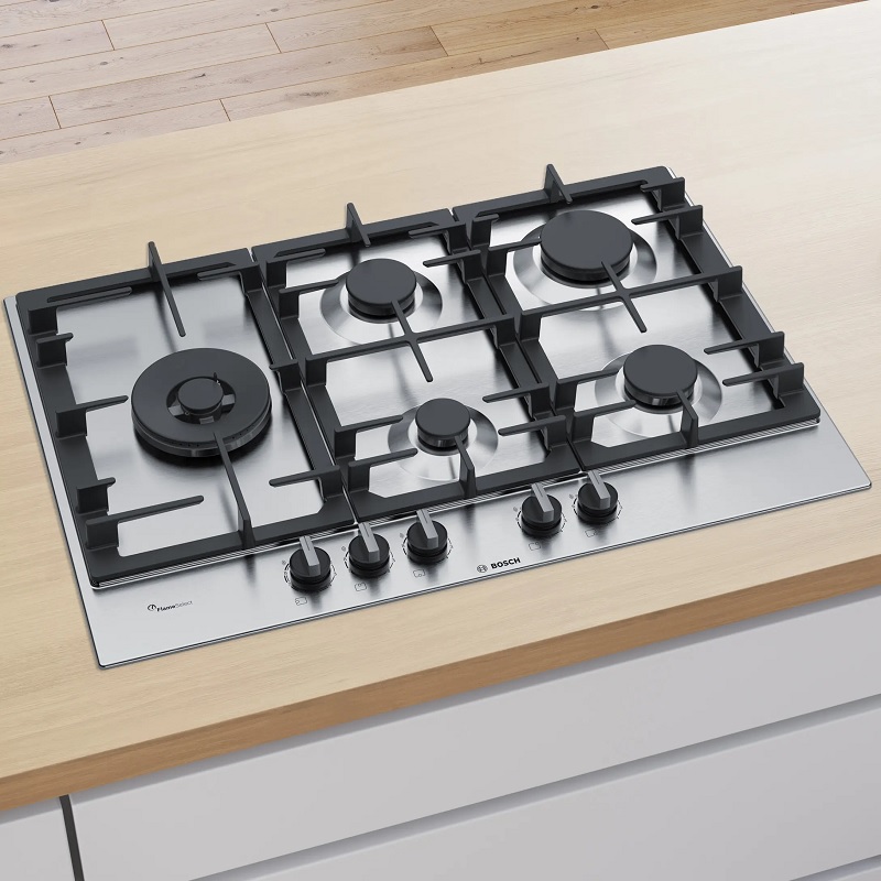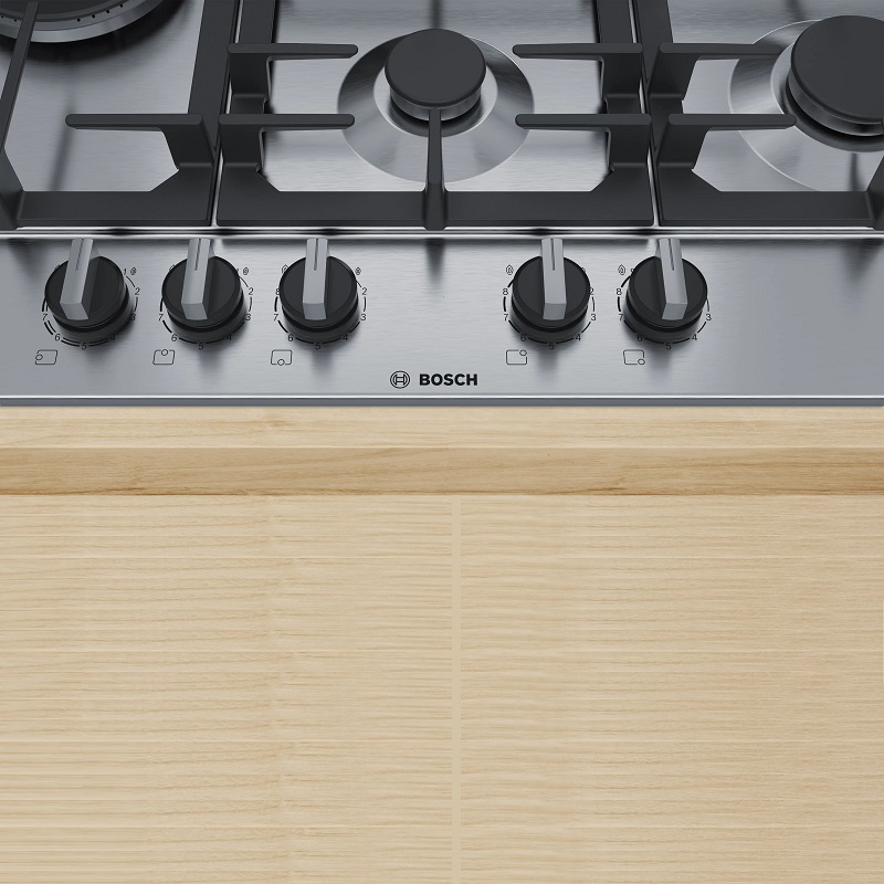 Placa de gas Bosch PCS7A5I90 (butano/gas natural) de 75 cm. 5 quemadores. Acero inoxidable.