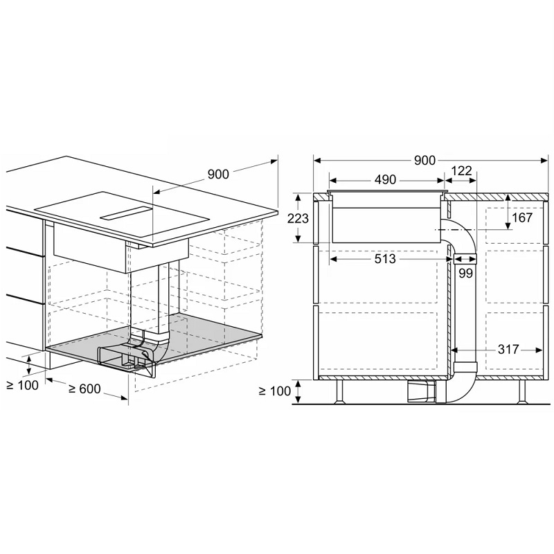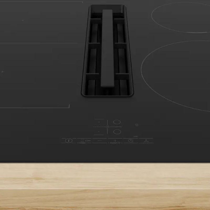 Lo que realmente distingue a esta placa de inducción es su campana extractora integrada. Esta característica única garantiza una cocción sin humo ni olores. Gracias al sistema de extracción integrado, el humo y los olores se eliminan directamente en su origen.