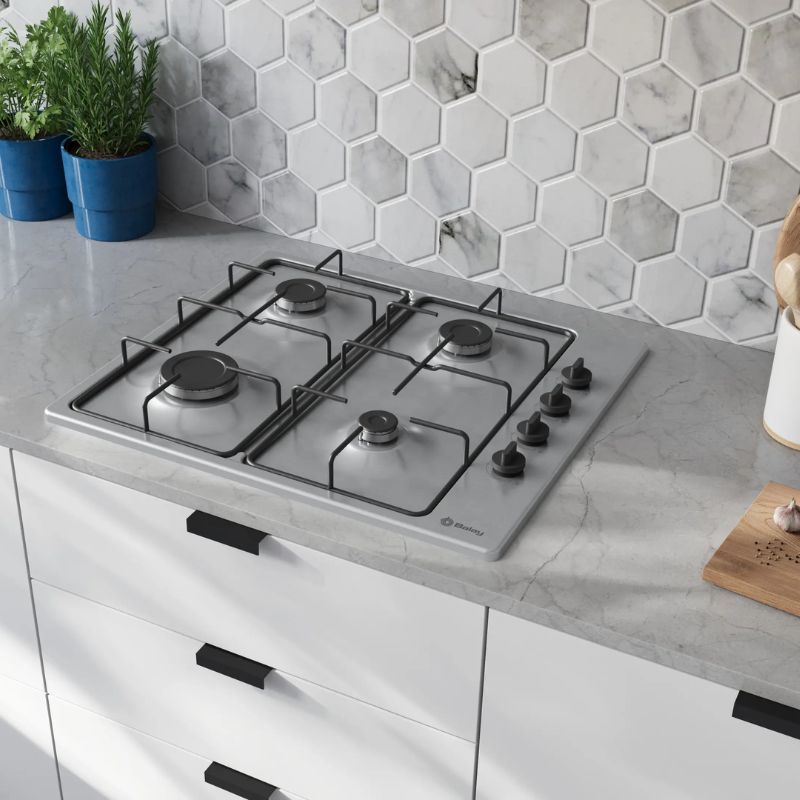 Placa de gas Balay 3ETX464BB But/Nat de 60 cm. 4 quemadores. Acero inoxidable.