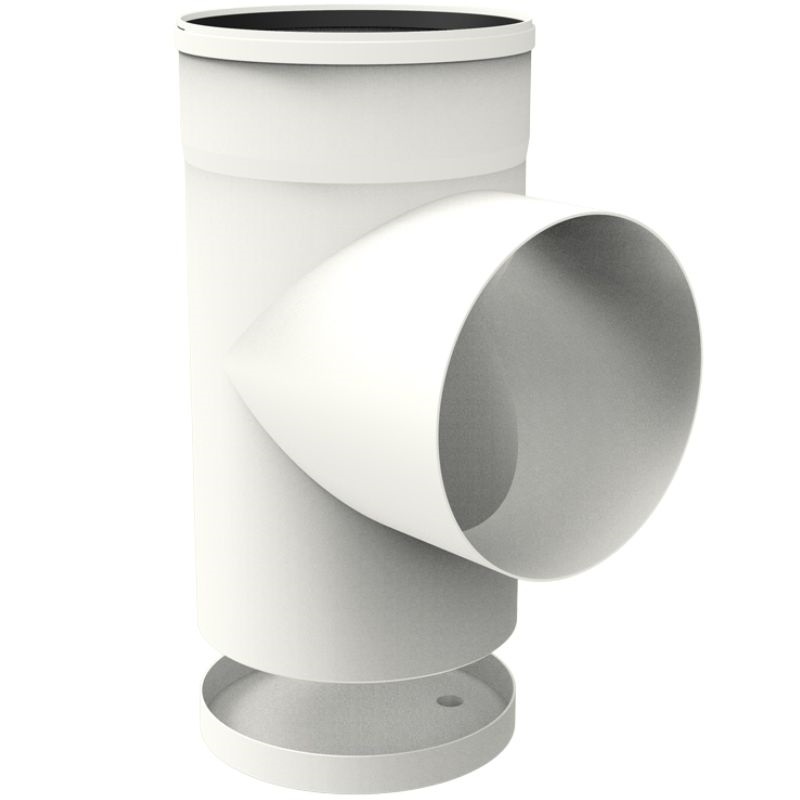Conector en T de polipropileno blanco con colector de condensados ​​(macho-hembra)