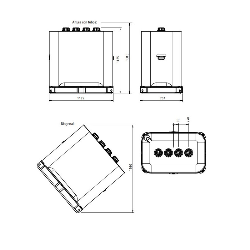Capacidad del depósito: 700 litros, depósito de doble pared, homologado para almacenamiento y transporte (sin controles integrados).