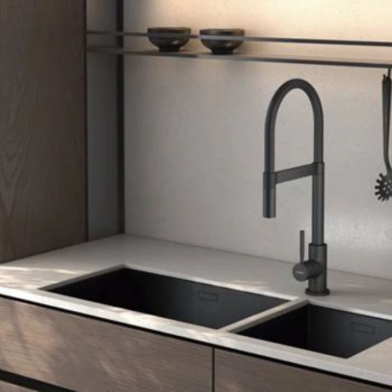 Acabado negro mate de alta calidad, con mangueras de conexión fáciles de instalar.