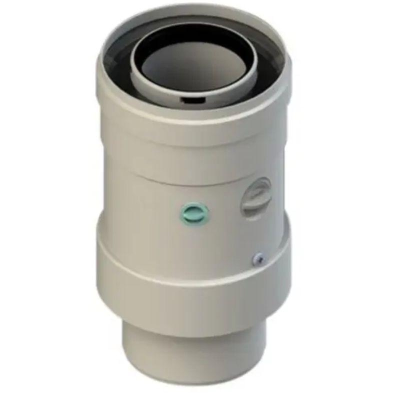 Conexión vertical 60/100 compatible con Intergas, fabricada en PP y acero lacado, coaxial (Ø60/Ø100). Compatible con calderas ACV e Intergas.