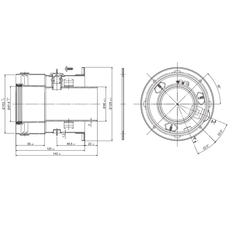 Salida vertical FIG Ø 60/100 mm para calderas de condensación. Acero/PP blanco