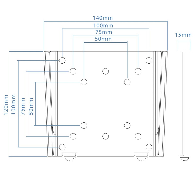 Máximo VESA: 100 x 100 mm compatible con los estándares de montaje VESA 50 x 50, 75 x 75 y 100 x 100 mm