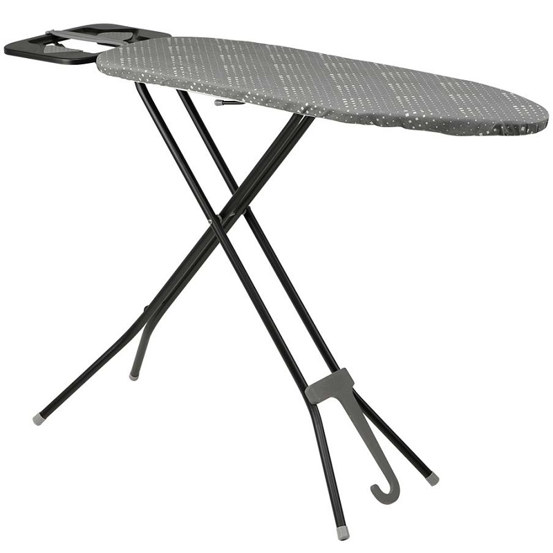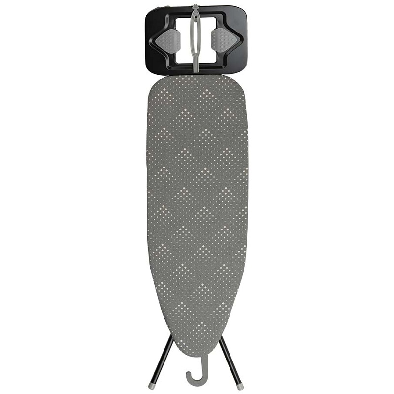 Hemos incorporado detalles que marcan la diferencia. El soporte para plancha la mantiene segura y a mano cuando guardas la ropa o necesitas un descanso. La tabla incluye una funda 100 % algodón, un material ideal que facilita el deslizamiento de la plancha y protege tu ropa. También cuenta con un práctico gancho para colgarlo fácilmente. Puedes guardarlo fácilmente en un armario o detrás de una puerta, manteniéndolo accesible pero oculto.