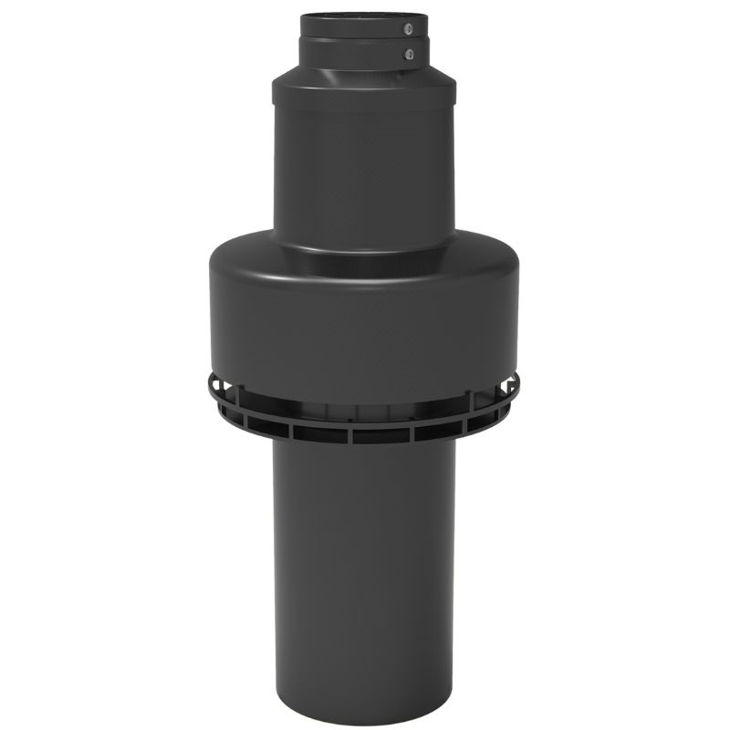 Terminal coaxial vertical corto Fig de polipropileno, 60/100 mm de diámetro, negro, para calderas de condensación, instalación interior individual y colectiva. Terminal coaxial vertical corto.
