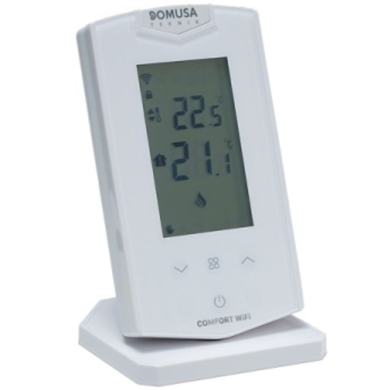 El termostato inalámbrico Domusa Confort WiFi, referencia CELC000579, es una solución avanzada para el control remoto de las calderas Domusa Teknik. Gracias a su conectividad WiFi, este termostato permite gestionar la temperatura interior y el funcionamiento de la caldera desde cualquier lugar, siempre que se disponga de conexión a internet, mediante un smartphone iOS o Android compatible. Con su programador semanal y sus funciones avanzadas, el Domusa Confort WiFi optimiza el consumo energético y mejora el confort de su hogar.