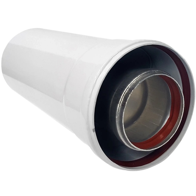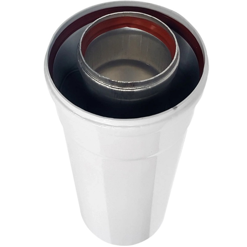 Conducto simple macho-hembra Ø 80, fabricado en aluminio lacado en blanco, para la extracción de humos y la entrada de aire de calentadores de agua sin condensación, para instalaciones interiores individuales.