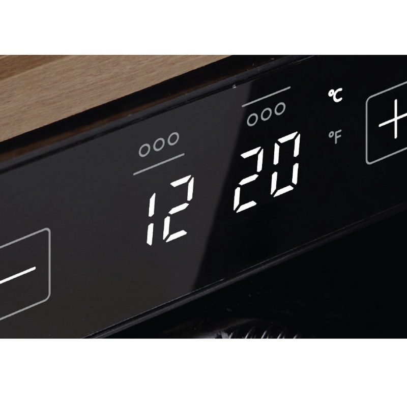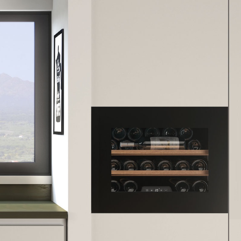 Temperatura regulable gracias al triple acristalamiento con protección UV y un filtro de carbón activado que protege el vino de la luz y los olores externos.