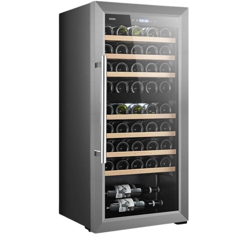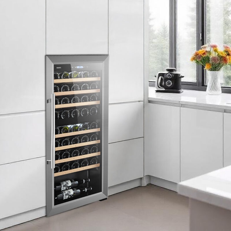 Esta vinoteca cuenta con refrigeración cíclica, motor universal y refrigerante R600a. Cuenta con clase energética G y un nivel de ruido máximo de 43 dB. Su diseño en negro incluye una puerta de cristal única e irreversible con tirador empotrado. Ofrece dos zonas de temperatura, controles táctiles con pantalla LED e iluminación interior LED. Tiene una capacidad total de 127 litros o 45 botellas, con múltiples compartimentos para un almacenamiento óptimo.